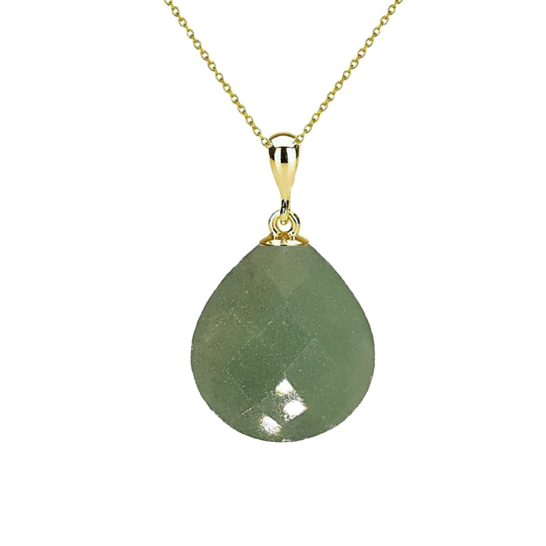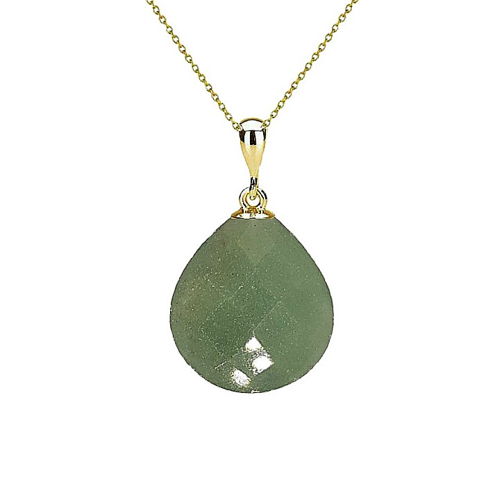Un pandantiv din aur de 14 karate cu o piatra semipretioasa naturala de aventurin fatetat, forma lacrima, marimea 16/18 mm. O bijuterie de exceptie, un cadou extrem de atractiv la un pret excelent.