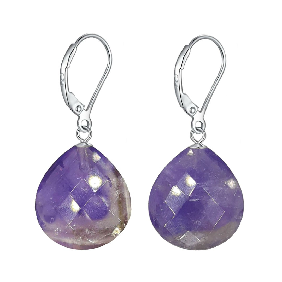 KASKADDA® Cercei Argint cu Tortita Inchisa si Pietre Semipretioase Naturale de Ametist Fatetat