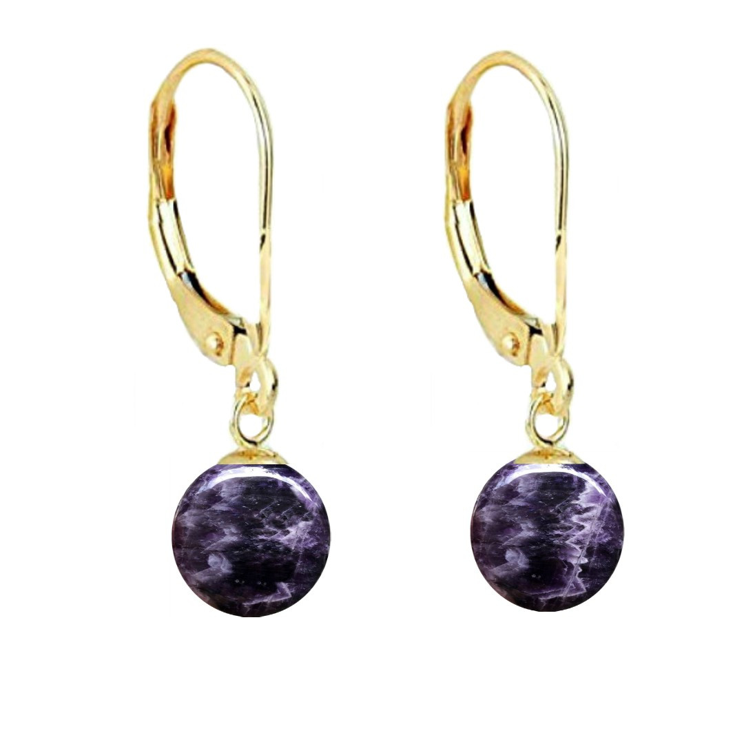 Set Aur 14 karate, Colier cu Pandantiv si Cercei cu Tortita Inchisa cu Pietre Semipretioase Naturale de Ametist de 8 mm