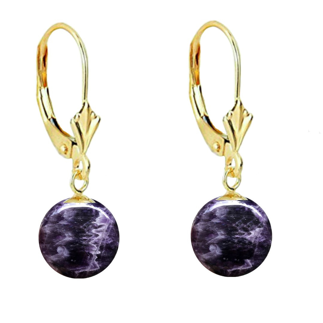 Cercei sunt realizati din aur galben de 14 karate si pietre semipretioase naturale, rotunde, de 10 mm.