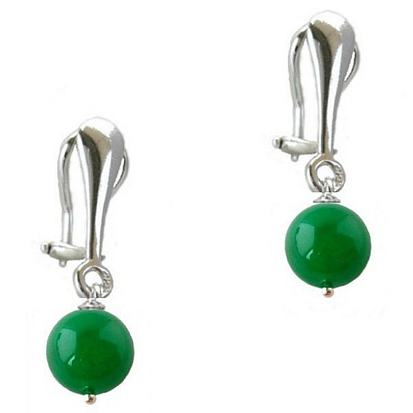 Cercei clips, din argint 925 si jad natural malaesian, rotund, de 8 mm. Cerceii sunt cu sistem de prindere pe ureche.