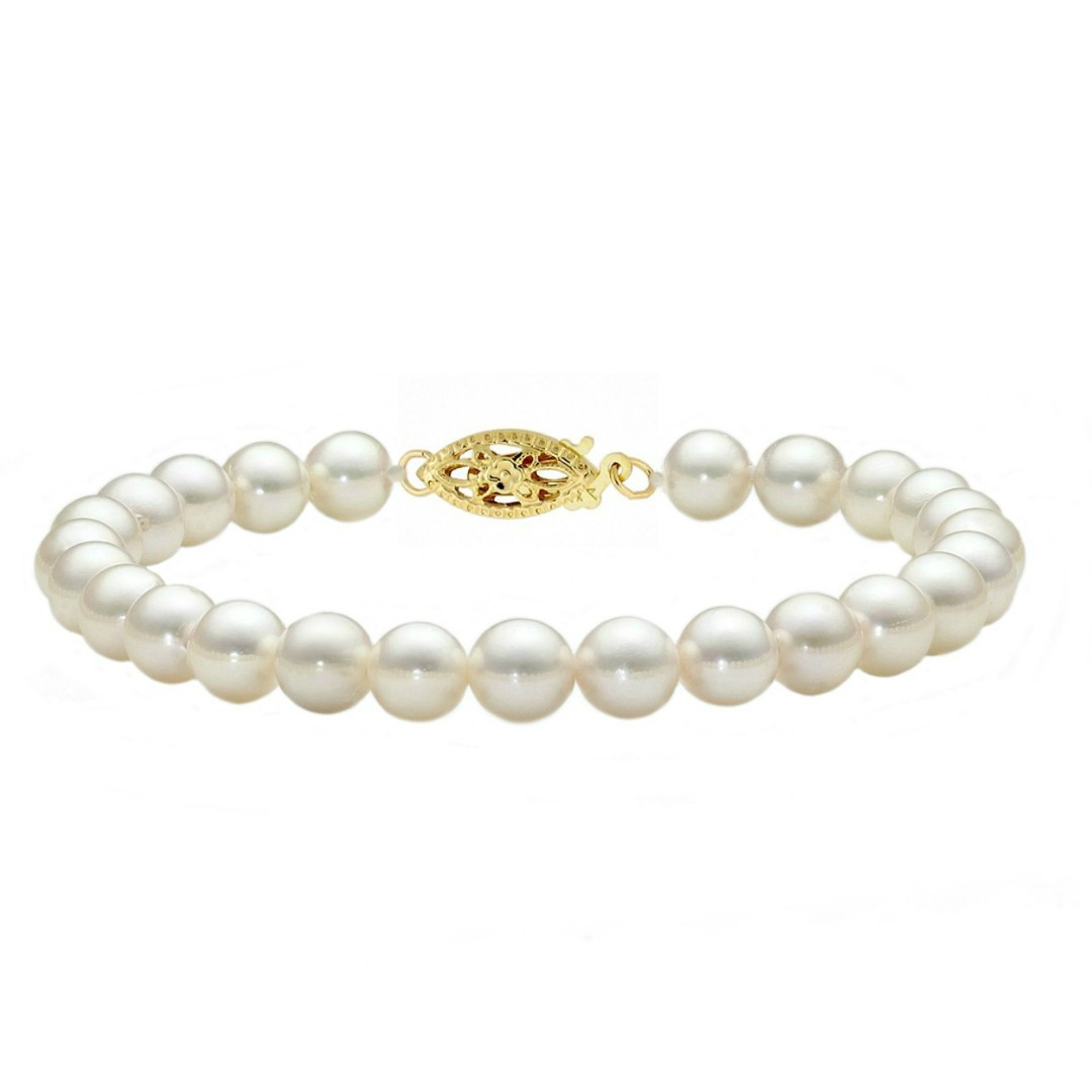 KASKADDA® Brățară Perle Naturale Akoya Japoneze 7,5-8 mm cu Închizătoare Aur Galben 14K | KASKADDA®