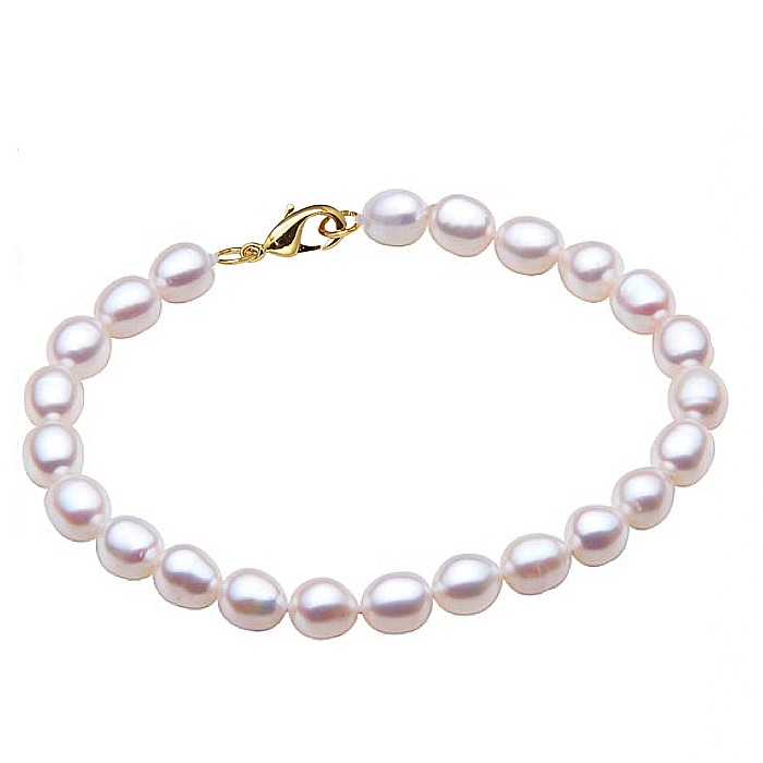 Brățară rafinată realizată din perle naturale ovale albe și închizătoare din aur galben 14K (aur 585) cu sistem de prindere sigur. O brățară cu perle naturale clasică și elegantă, potrivită pentru orice ținută. Farmec discret pentru momente speciale sau purtare zilnică.