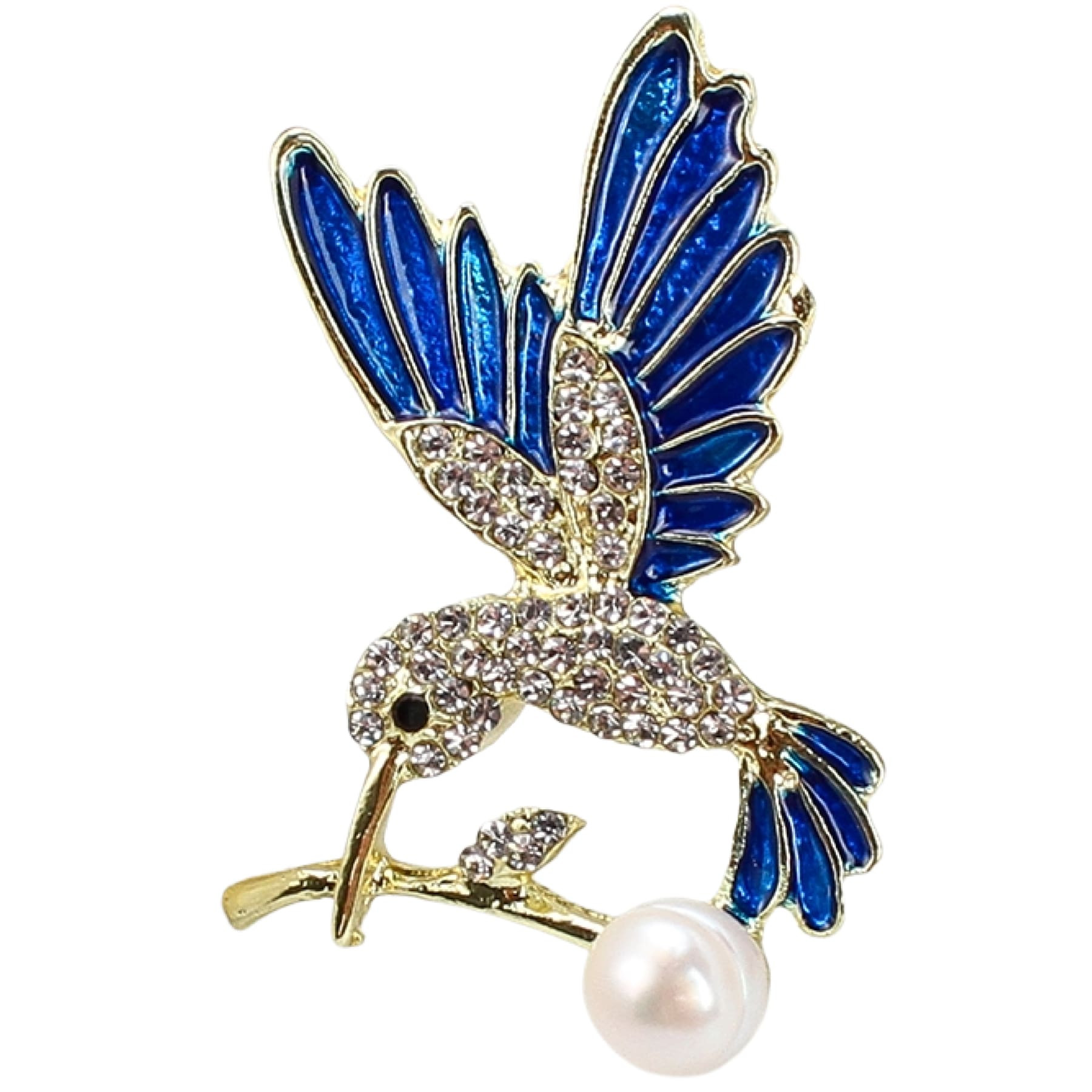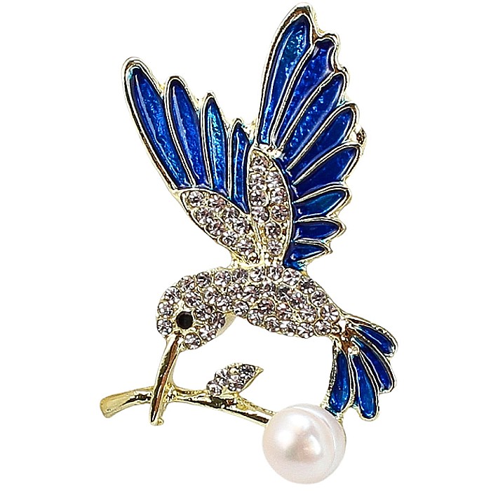 O brosa cu perle inspirată de grația colibriului, cu aripi albastre realizate în email lucios și cristale fine care captează lumina la fiecare mișcare. Perlă naturală de cultură completează designul într-o manieră elegantă și feminină.