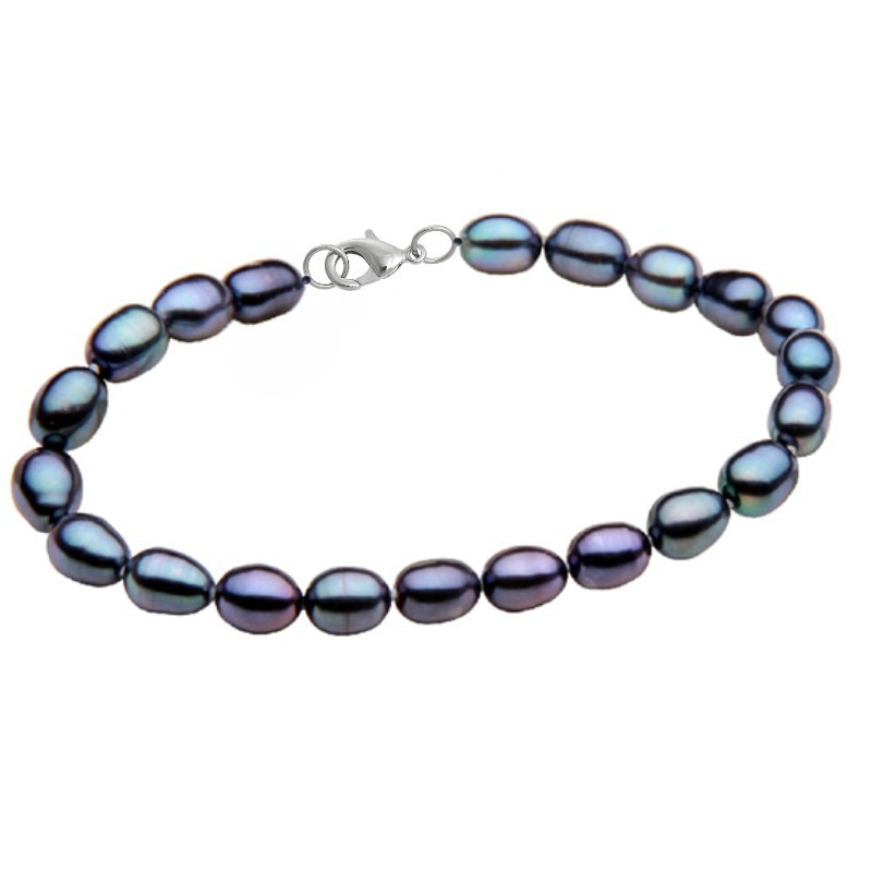 Brățară elegantă cu perle naturale negre ovale și închizătoare sigură din argint 925, cu design clasic. O brățară cu perle naturale sofisticată, ideală pentru ținute elegante sau cadouri rafinate.