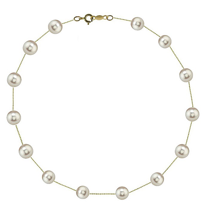 Un colier cu perle naturale de 7–8 mm, albe, rotunde și strălucitoare, montate cu rafinament pe un lănțișor fin din aur 14K (aur 585). O bijuterie elegantă, ușor de purtat, ideală pentru femeile care apreciază simplitatea cu prezență. Perfect de păstrat sau de oferit cu inima deschisă.