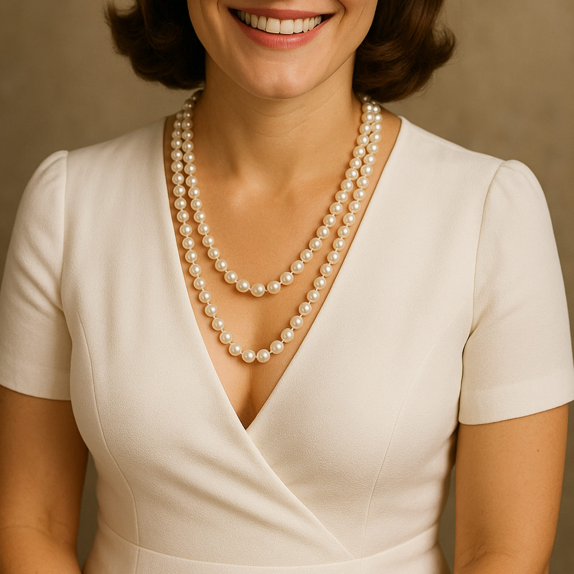 Colier cu perle naturale albe, rotunde, de 6–7 mm, într-un design versatil de 120 cm, cu închizătoare din argint 925. O bijuterie rafinată, ce poate fi purtată în mai multe moduri sau oferită cu drag.