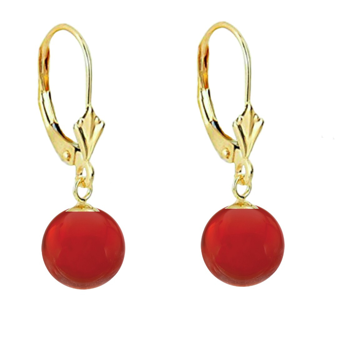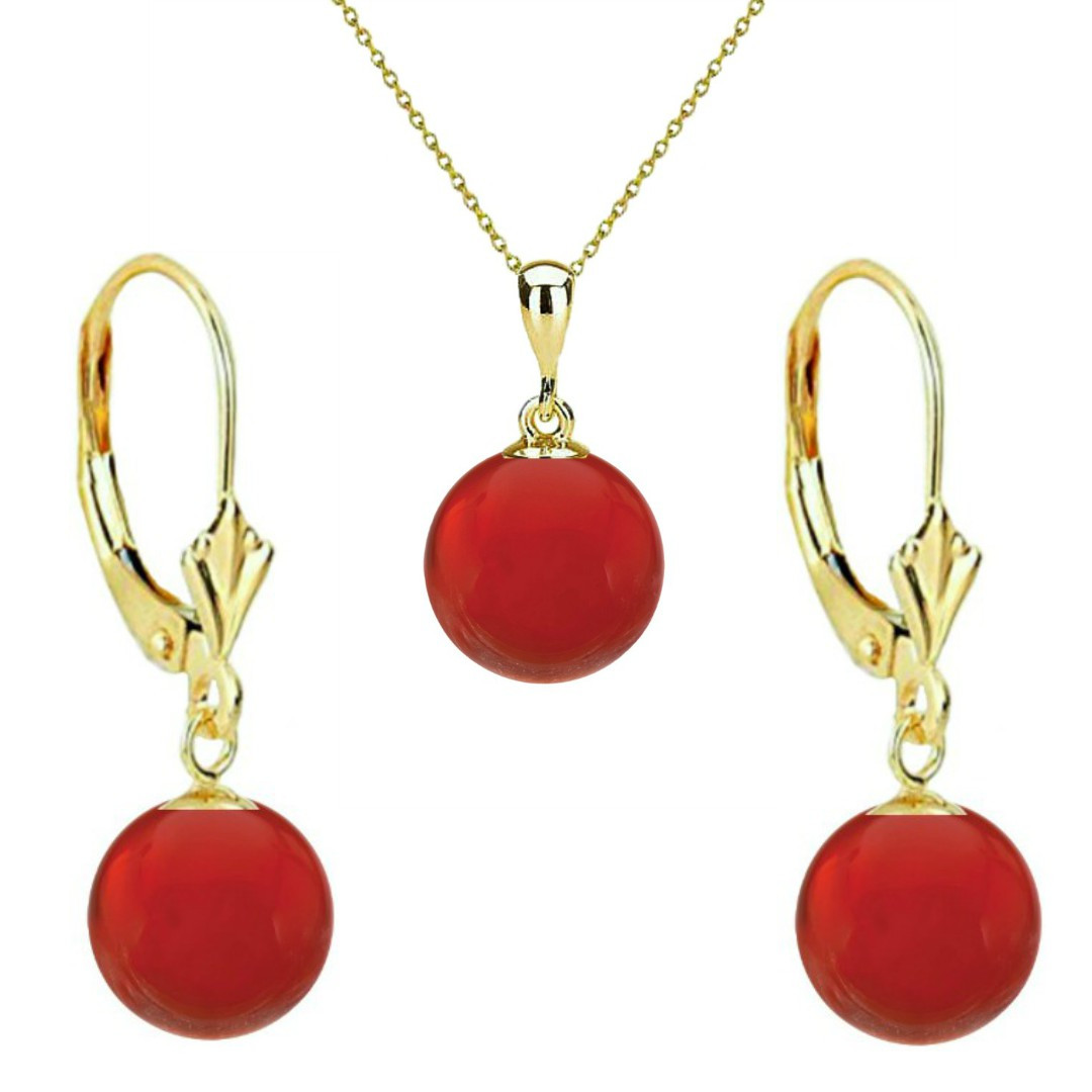 Set Aur 14 karate, Colier cu Pandantiv si Cercei Model Lalea cu Pietre Semipretioase Naturale de Carneol de 10 mm