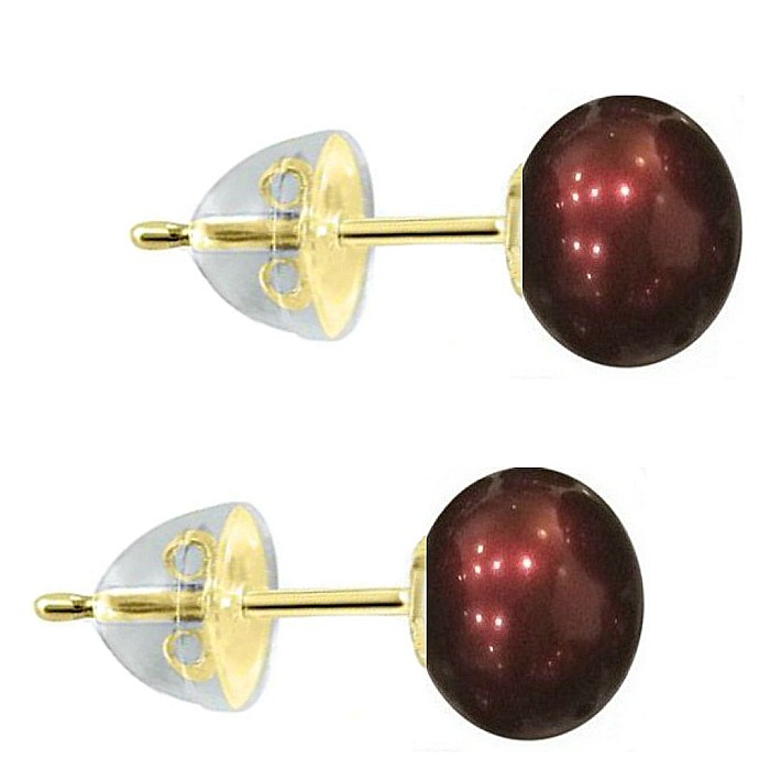 Cercei Perle Naturale Roșu Vin 7–8 mm, AAA, Aur 14K (aur 585), Tip Șurub cu Fluturași Silicon | KASKADDA®