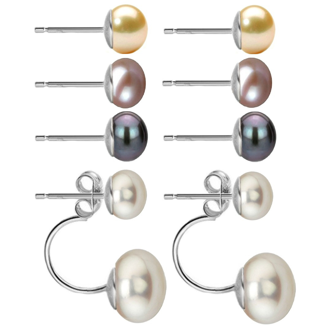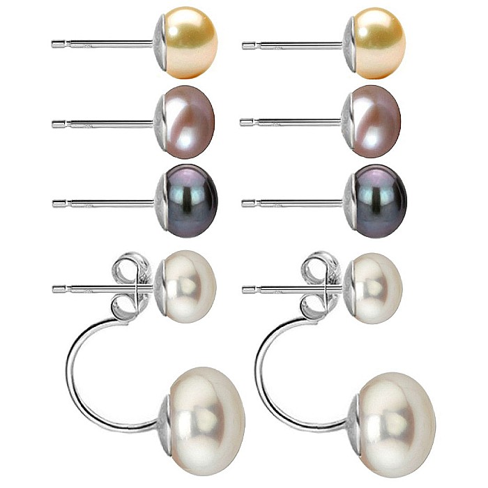 Fiecare set include perle naturale de apă dulce, rotunde, tip buton, în două dimensiuni: 9–10 mm pentru partea inferioară și 7–8 mm pentru partea superioară. Nuanțele elegante – alb, crem, lavandă, negru – pot fi combinate sau purtate individual, în funcție de ținută și dispoziție.