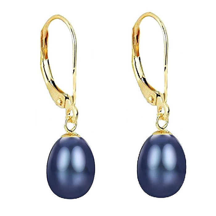 Perle de cultură de apă dulce, calitate AAA, în nuanță de negru, cu reflexe metalizate și formă de lacrimă.