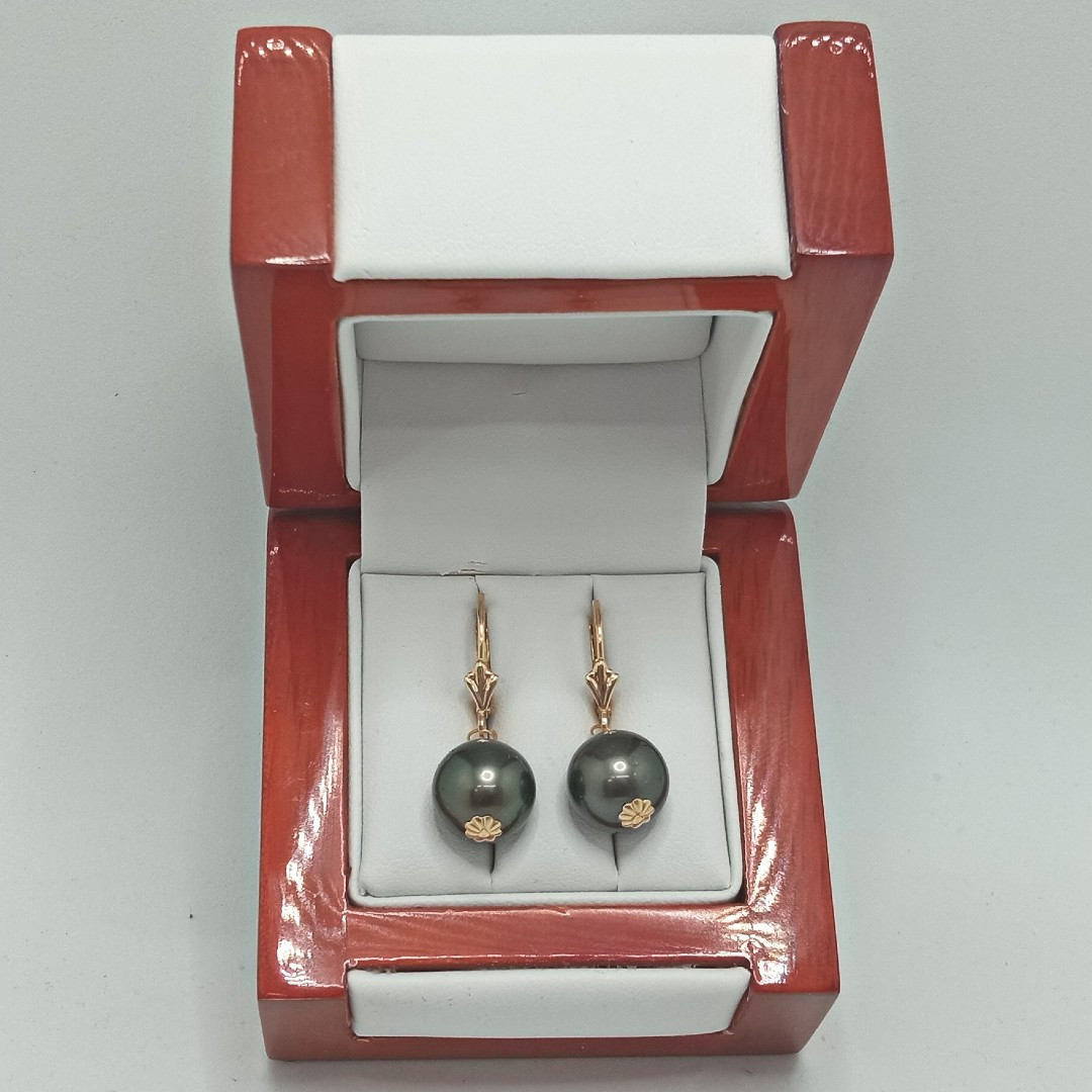 Există bijuterii care nu doar se poartă, ci se simt. Așa sunt acești cercei cu perle Tahitiene de 10-11 mm – impunători, dar echilibrați, rotunzi și fini, cu o eleganță care nu cere atenție, dar o primește. Perlele provin din lagunele adânci ale Polineziei Franceze, locul unde natura sculptează în apă reflexii metalice, greu de descris în cuvinte.