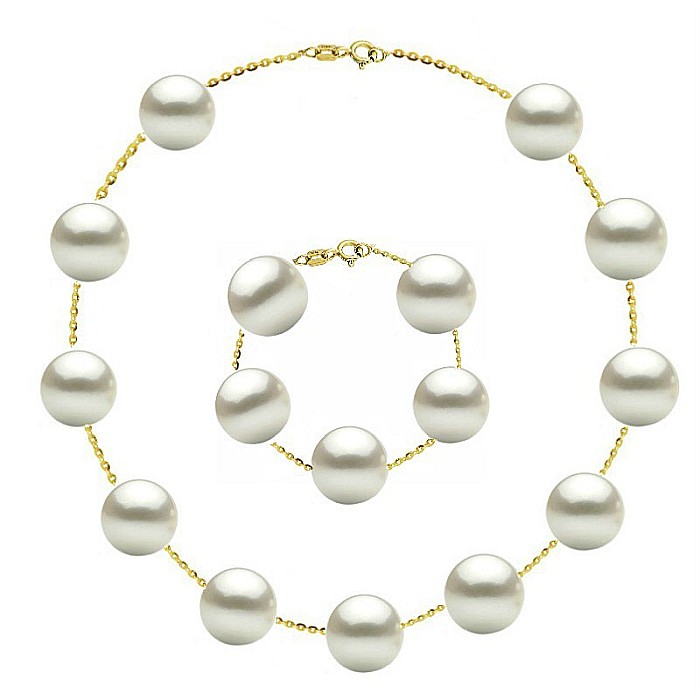 Colierul are o lungime standard de 45 cm, iar brățara – 18 cm, proporții care pun în valoare gâtul și încheietura cu delicatețe. Aurul galben susține armonios forma perlelor, conferind întregului ansamblu o lumină caldă, discretă și nobilă.