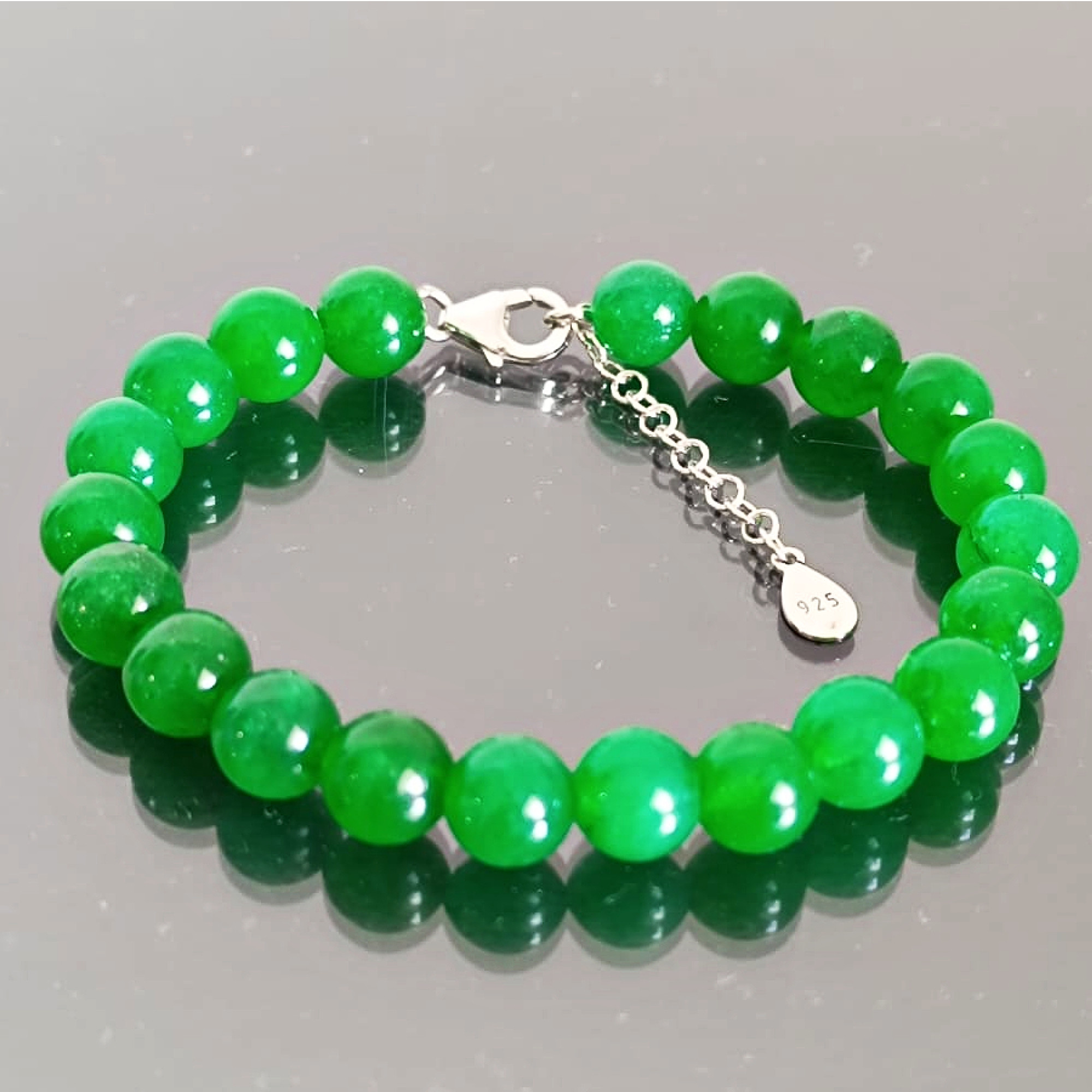 O bratara de o eleganta clasica, cu jad natural malaesian de 8mm, creata sub brandul KASKADDA, marca inregistrata in 27 de tari in Europa.