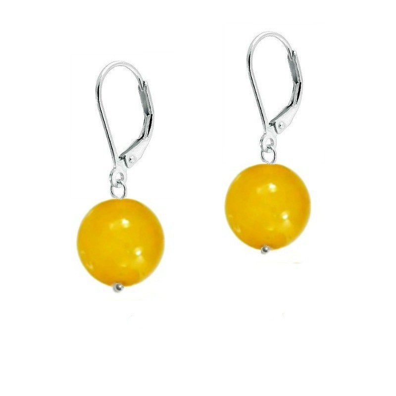 Cercei cu tortita inchisa din argint 925 si jad galben de 10 mm. Este o bijuterie eleganta, pretioasa, de bun gust. Un cadou de neuitat.