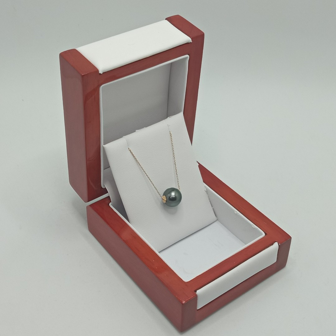 Un colier cu perlă naturală Tahitiană impresionantă, de 10-11 mm, cu luciu tip oglindă și montură din aur galben 14K (aur 585). O bijuterie cu personalitate, creată pentru femeile care iubesc simplitatea luxoasă și detaliile care contează. Alegerea perfectă pentru un cadou rar și sofisticat.