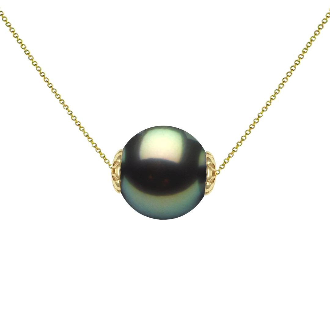 Un colier cu perlă naturală Tahitiană, rotundă, de 9-10 mm, cu luciu tip oglindă și montură din aur galben 14K (aur 585). O bijuterie rară, cu o prezență puternică, creată pentru femei care își doresc mai mult decât un accesoriu – un simbol al rafinamentului. Un cadou memorabil, plin de sens.