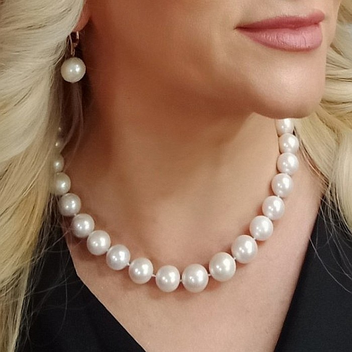 Un colier cu perle naturale albe Edison, spectaculos prin dimensiune (11,5–14,5 mm), calitate AAA, montat integral în aur alb 14K (aur 585). Bijuterie modernă, rafinată și extrem de rară – un cadou memorabil sau o alegere personală pentru apariții sofisticate.