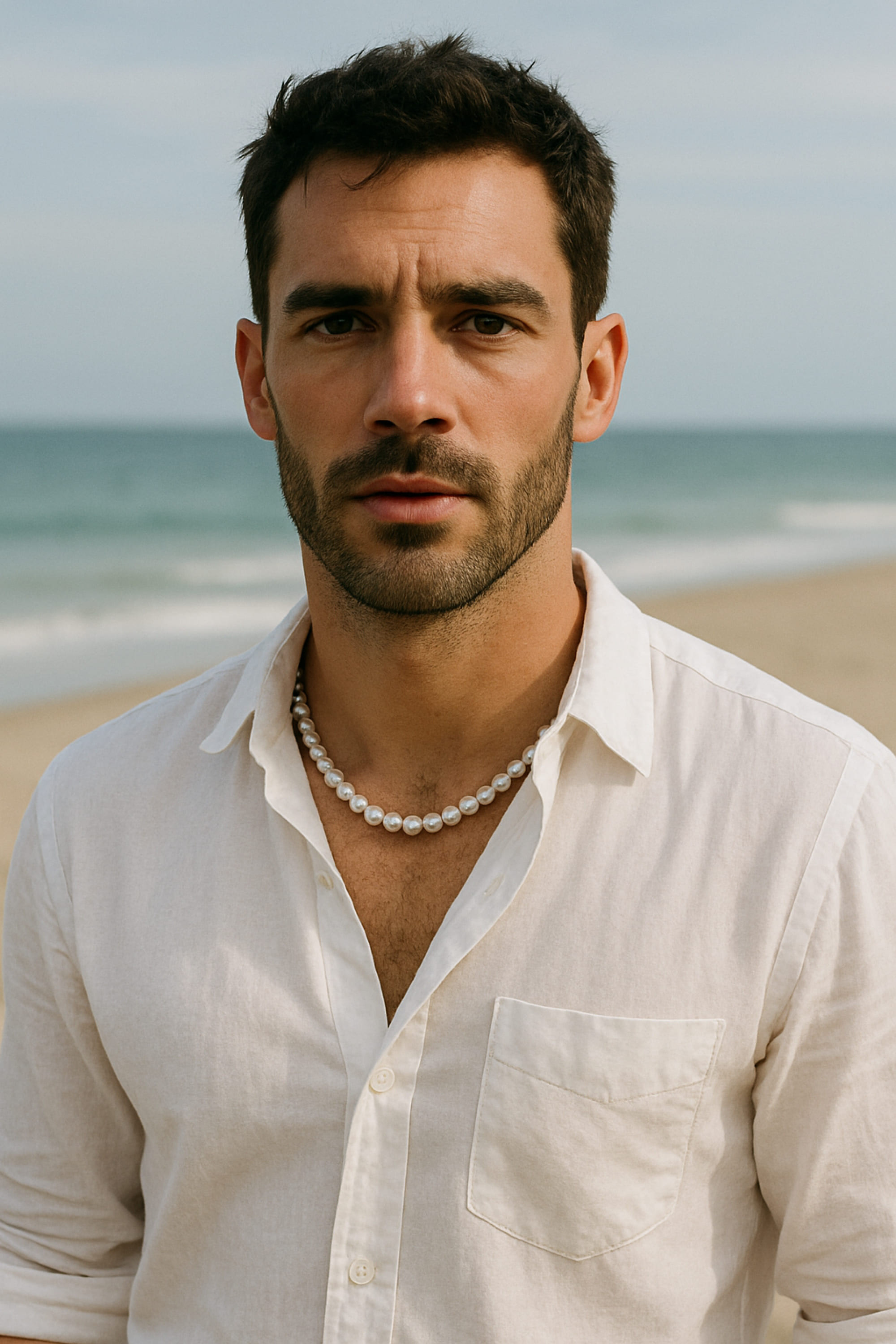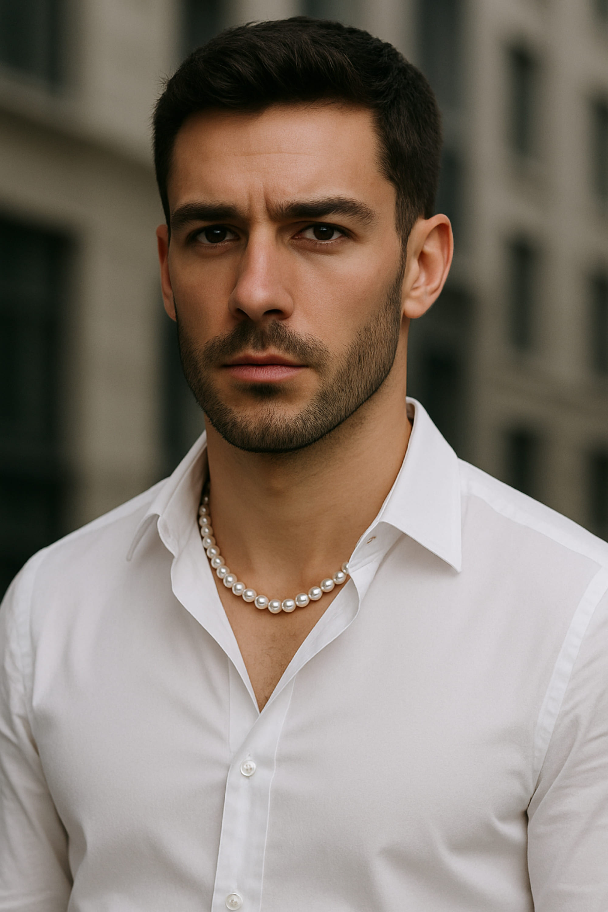 Poartă un colier cu perle pentru barbati care exprimă eleganță tăcută, individualitate și rafinament – fără a face compromisuri.