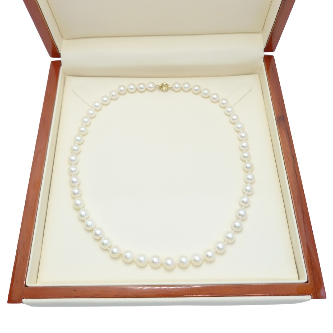 Perlele Akoya sunt rare, iar colierele compuse exclusiv din perle de calitate AAA sunt produse în serii foarte limitate. Acest colier cu perle japoneze este o alegere ideală pentru evenimente deosebite sau aniversări semnificative.
