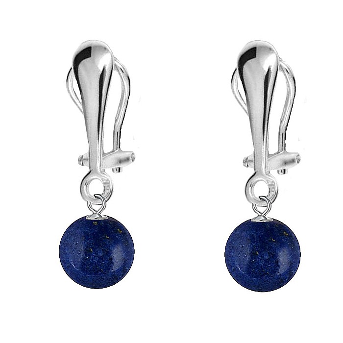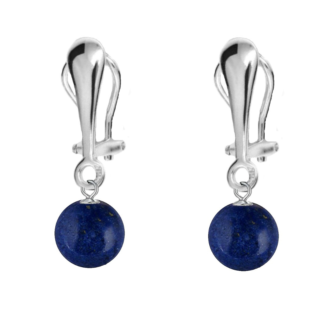 KASKADDA® Cercei Argint, Tip Clipsuri, cu Pietre Semipretioase Naturale de Lapis Lazuli de 8 mm