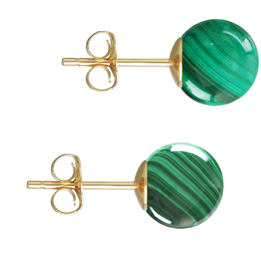 Cerceii sunt realizati din aur galben de 14 karate si pietre semipretioase naturale de malachit.