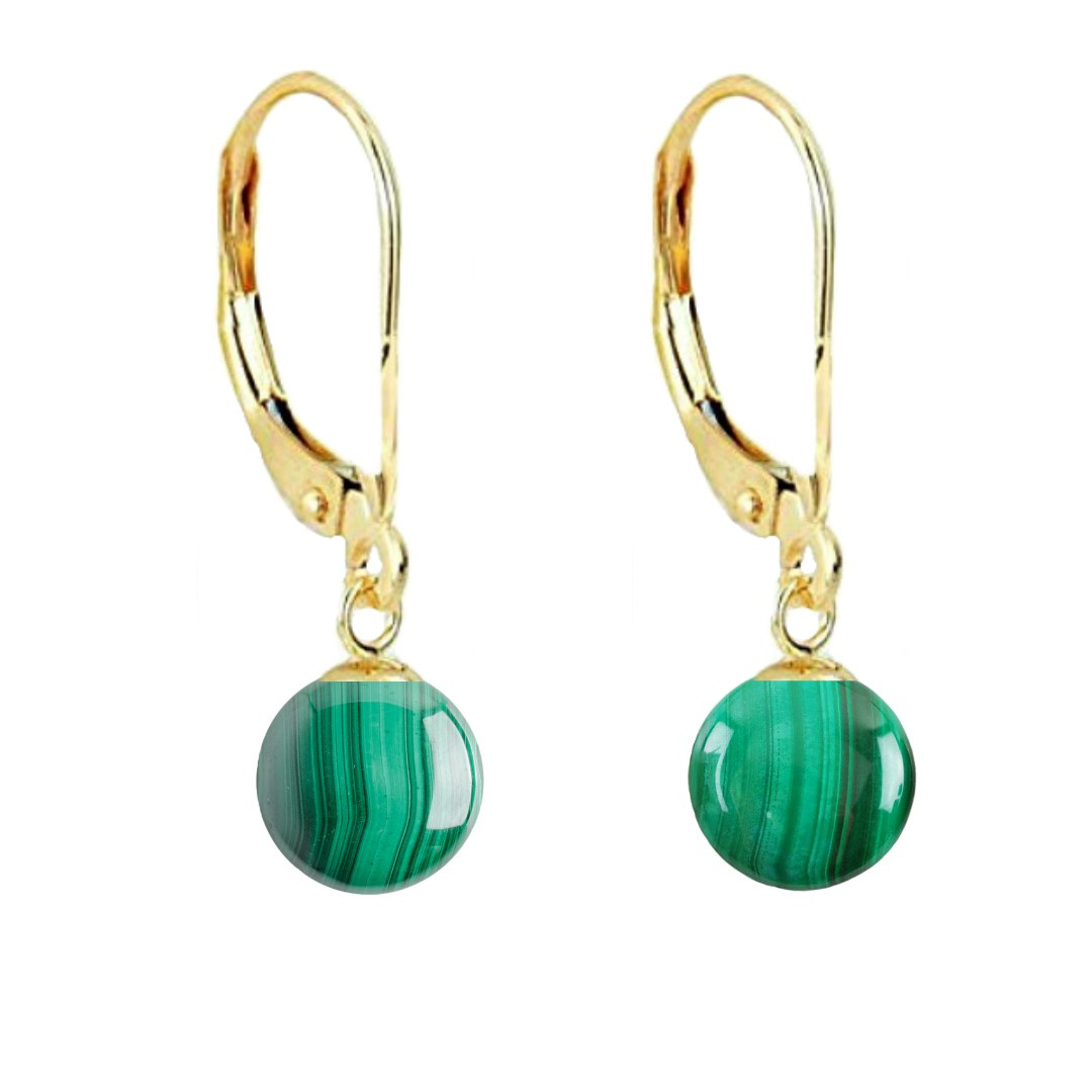 KASKADDA® Cercei Aur Galben de 14 karate, Tortita Inchisa, cu Pietre Semipretioase Naturale de Malachit de 8 mm