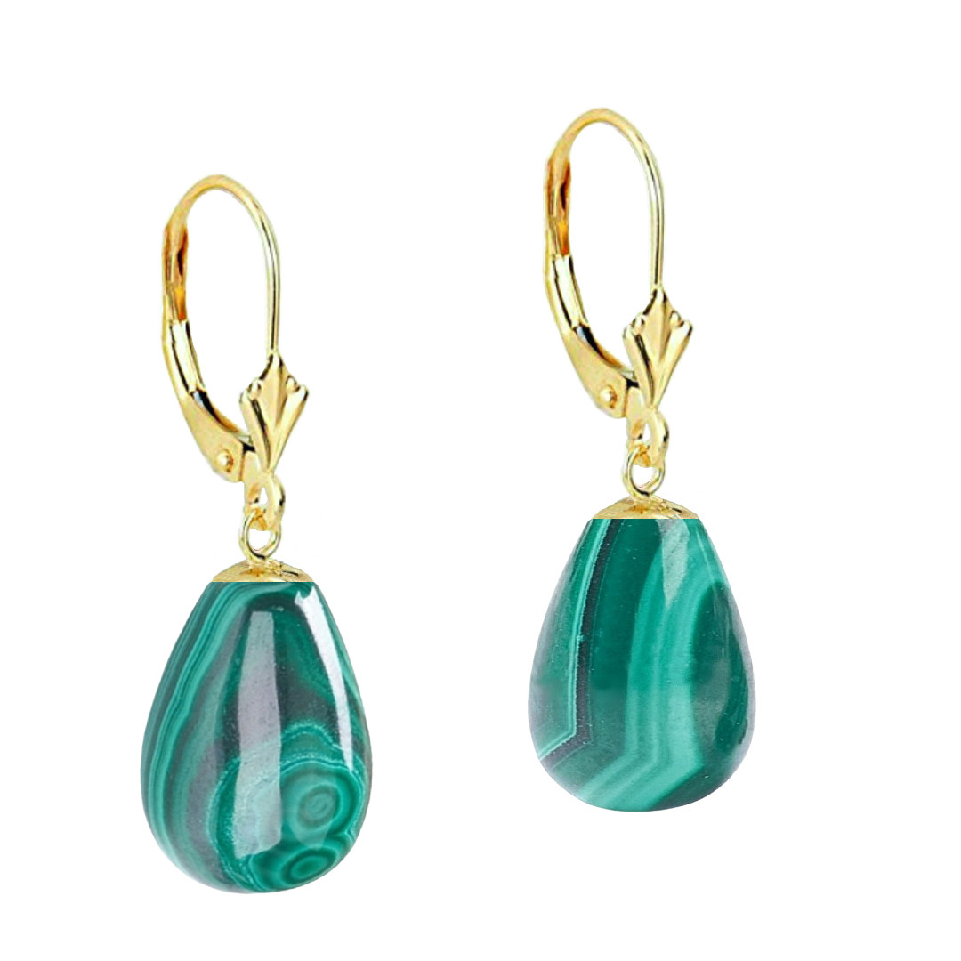KASKADDA® Cercei Kaskadda cu Pietre Semipretioase de Malachit, Lacrima, de 14/10 mm si Tortita Lalea din Aur de 14 karate