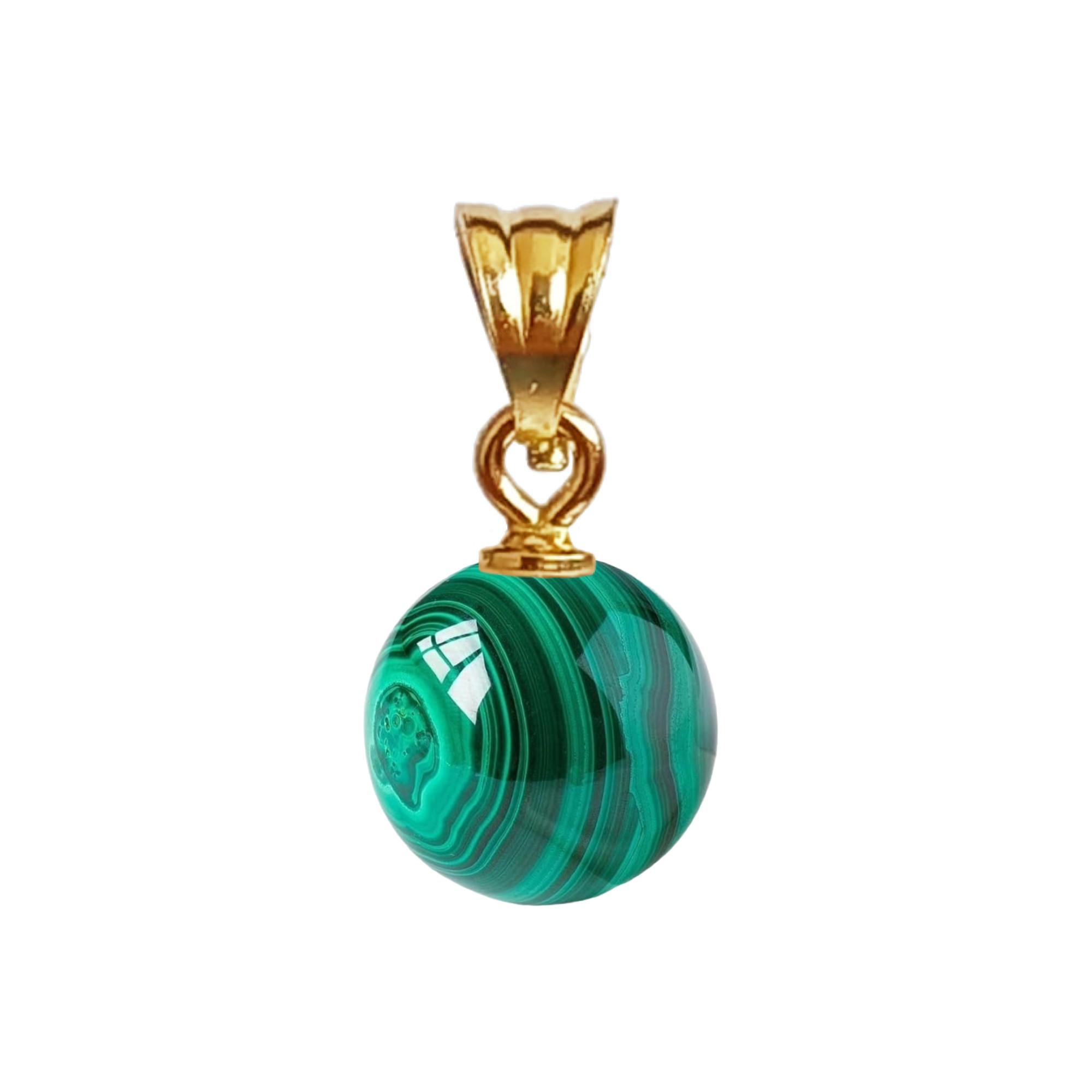 Un pandantiv din aur de 14 karate cu o piatra semipretioasa naturala de malachit, marimea 8 mm. O bijuterie de exceptie, un cadou extrem de atractiv la un pret excelent.