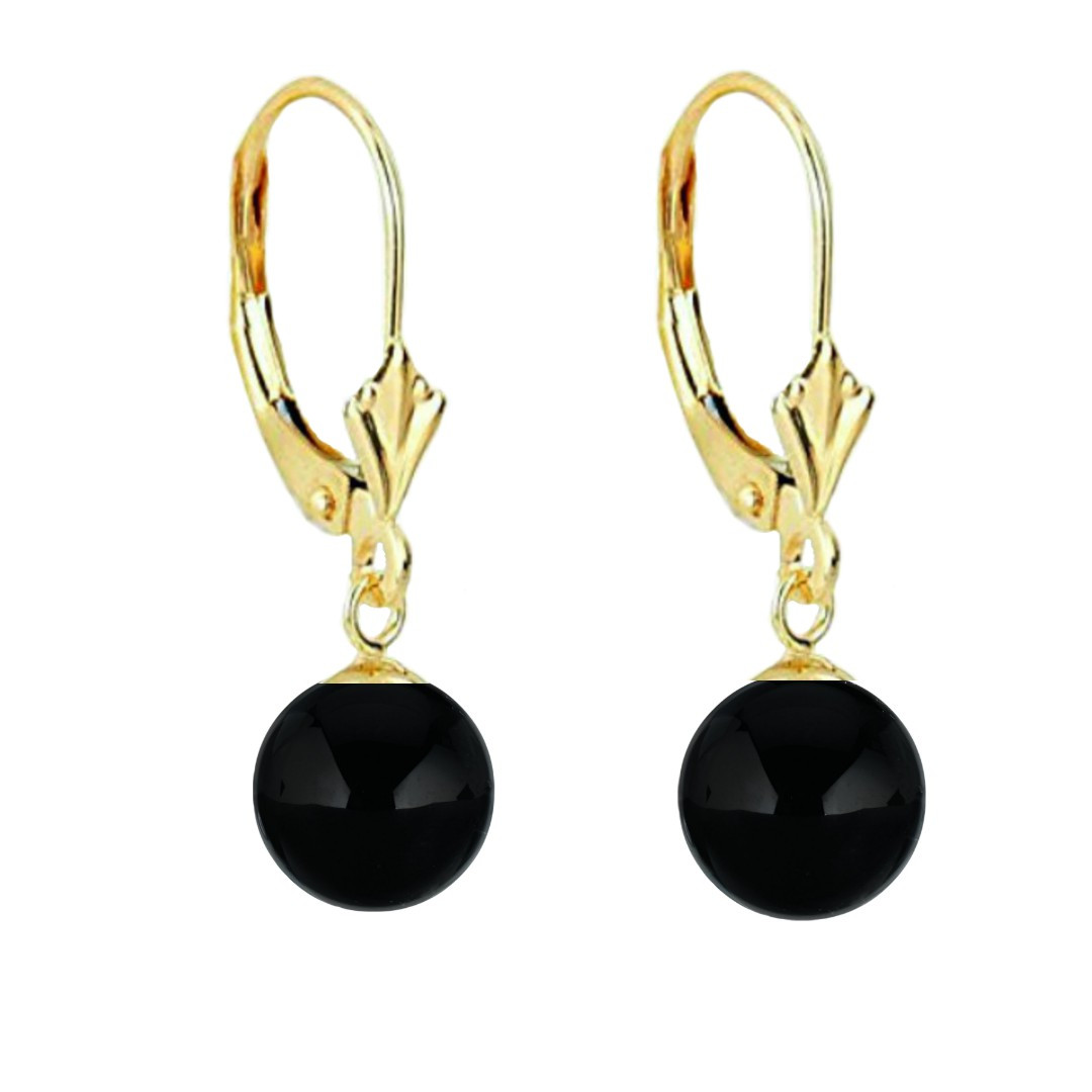 Cercei Aur Galben de 14 karate cu Tortita Model Lalea si Pietre Semipretioase Naturale de Onix de 8 mm