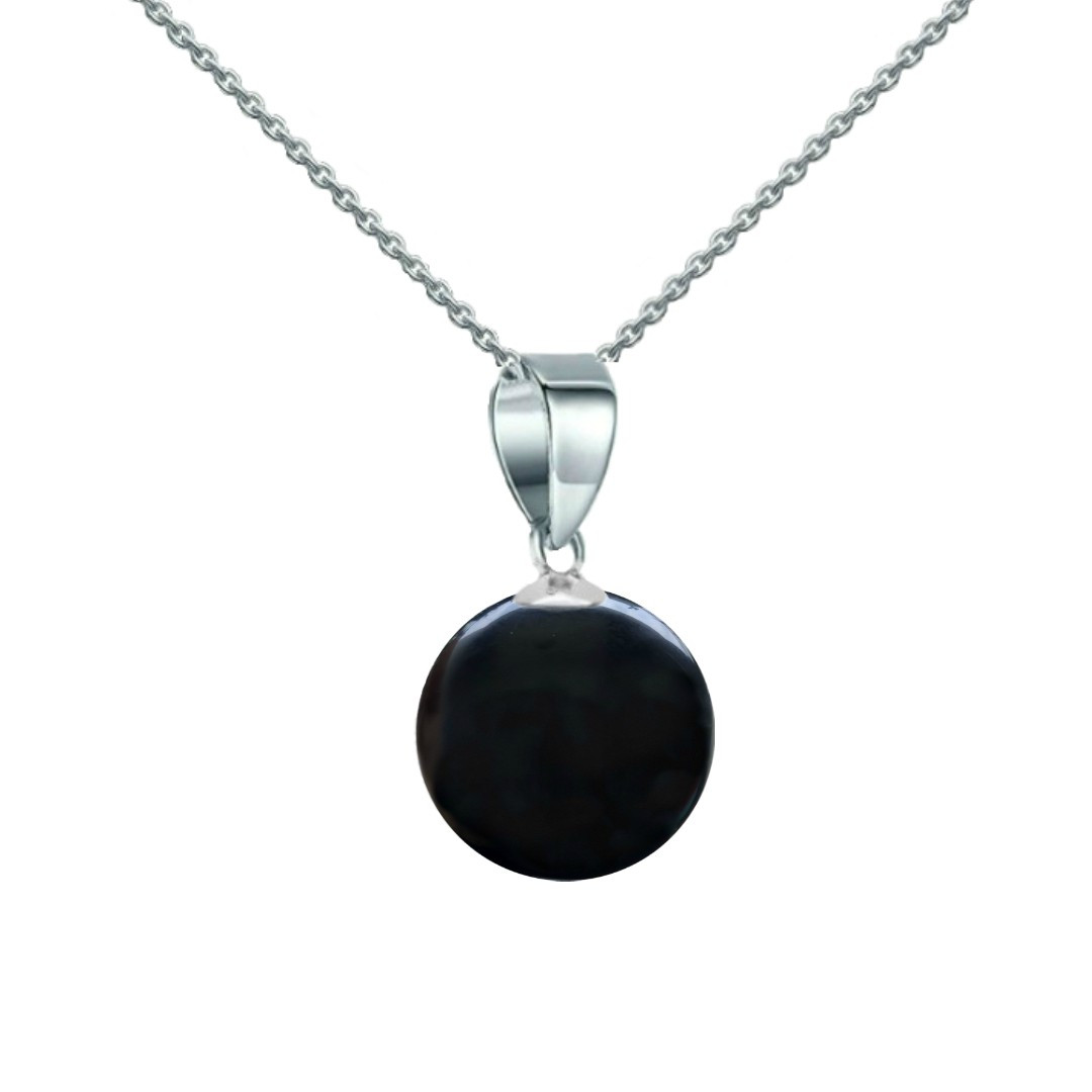 Un pandantiv din argint 925 placat cu rodiu alb cu o piatra semipretioasa naturala de onix, marimea 8 mm, pe un lantisor de argint 925 placat cu rodiu alb. Lungimea lantisorului de argint 925 este de 45 cm.