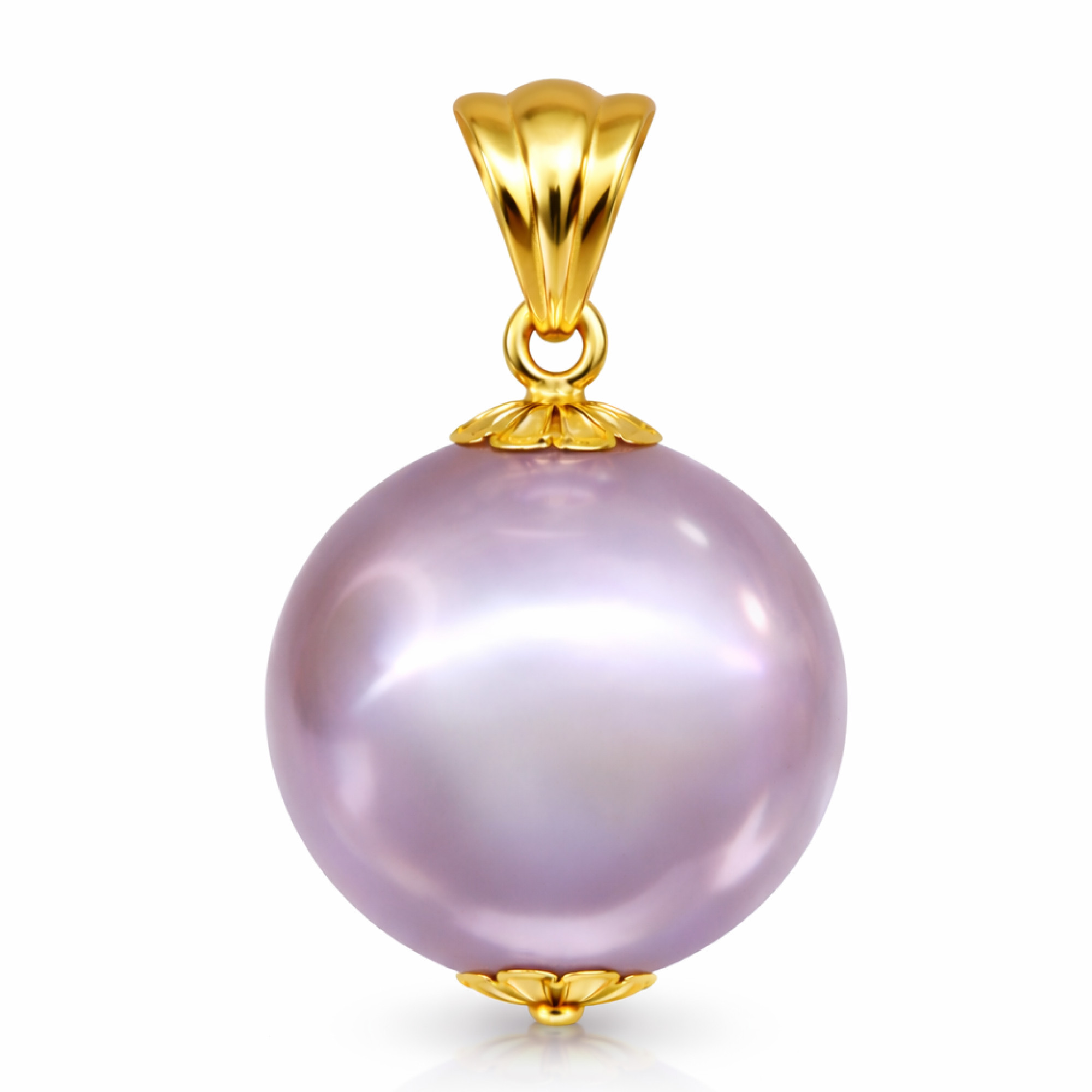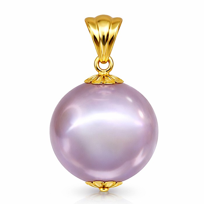 Un pandantiv cu perlă Edison naturală, rară, în nuanță lavandă, de 12–12,5 mm, montată în aur galben 14K (aur 585). O bijuterie cu perlă și aur, elegantă și distinctă, cu un farmec care rămâne nemuritor.