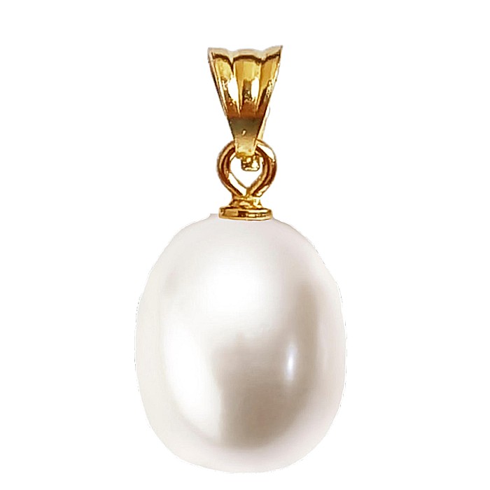 Un pandantiv cu perlă naturală albă, rară, în formă de lacrimă, cu dimensiunea de 12/9 mm, montată elegant în aur galben 14K (aur 585). O bijuterie cu perlă și aur, de colecție, cu o strălucire ce nu se uită.