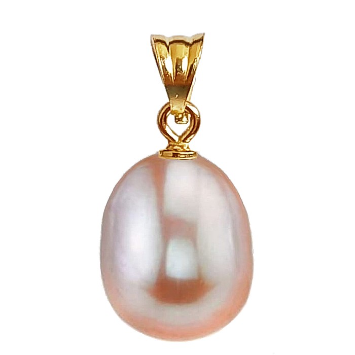 Un pandantiv cu perlă naturală lavandă, rară și rotundă, cu dimensiunea de 12/9 mm, montată elegant în aur galben 14K (aur 585). O bijuterie cu perlă și aur unică, cu tonuri pastel și rafinament natural.