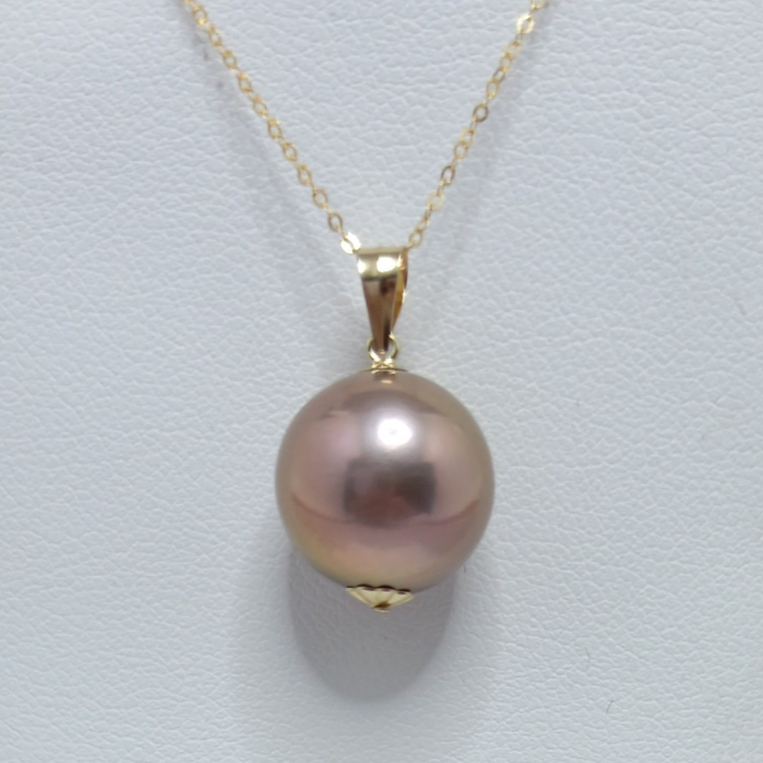 Colier cu perlă naturală lavandă Edison, rotundă, impresionantă ca dimensiune (12–12,5 mm), montată într-un pandantiv din aur galben de 14K. O bijuterie rară, cu personalitate distinctă – perfectă de oferit sau de păstrat ca piesă de colecție.