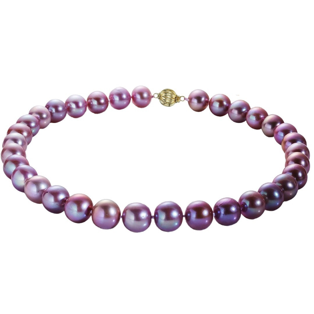 Un colier cu perle naturale Edison lavandă, de dimensiuni impresionante (10–12 mm), calitate AAA, montat integral în aur galben 14K (aur 585). O bijuterie rară și exclusivistă, cu strălucire inconfundabilă și volum vizual remarcabil – perfectă pentru apariții de impact sau un cadou valoros.