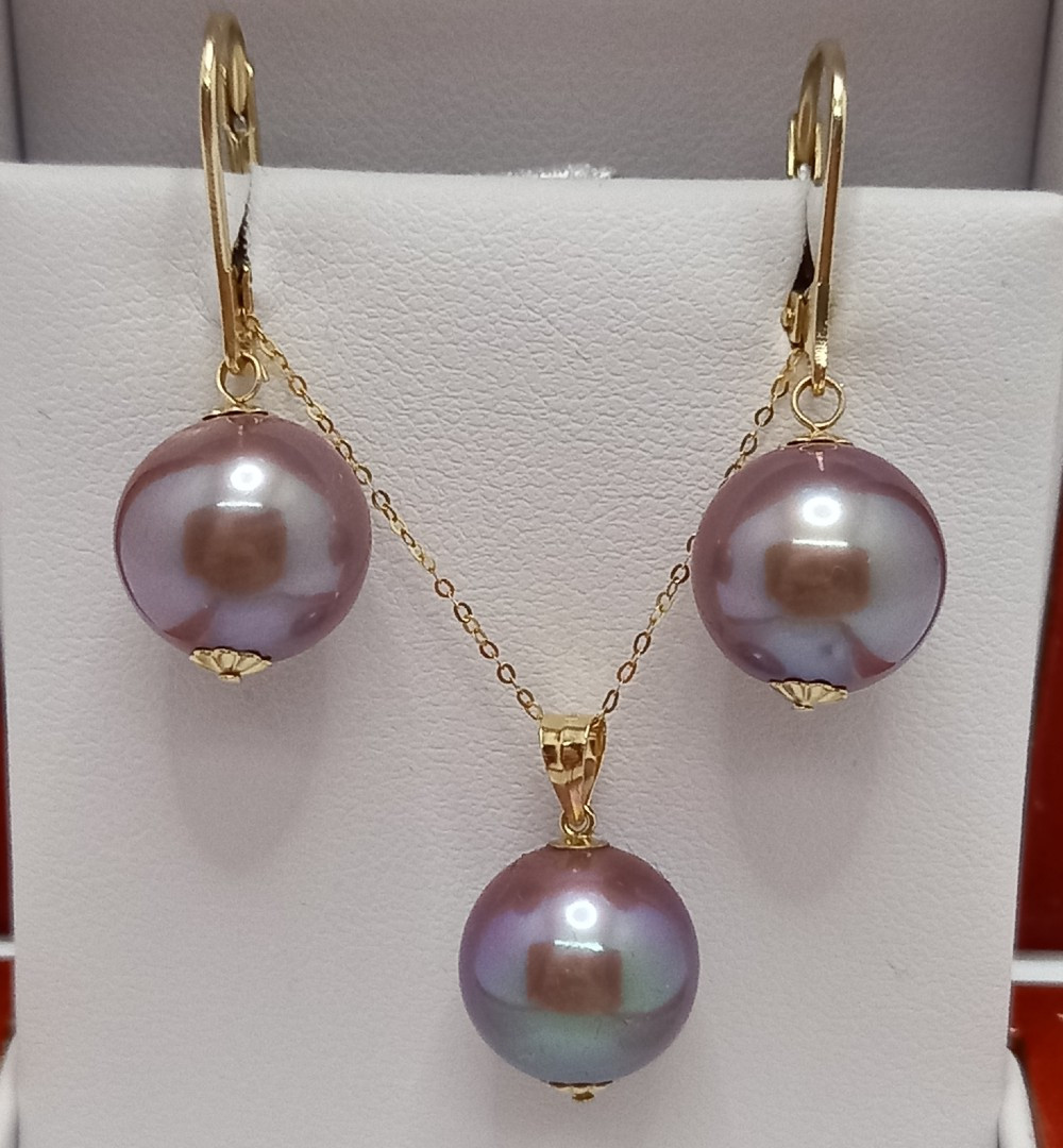 Descoperă eleganța subtilă a unui set cu perle naturale Edison lavanda de 12–12,5 mm, montate cu aur galben 14K. O bijuterie rafinată, creată pentru momente speciale și cadouri memorabile.