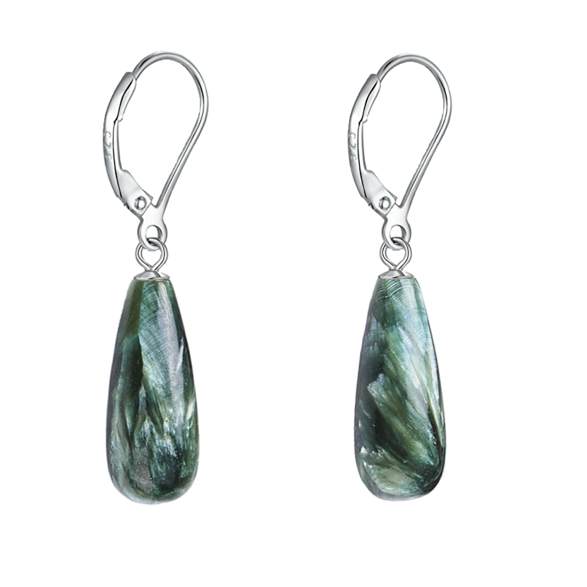 Serafinitul, provenind dintr-o sursă unică din Siberia, își dezvăluie frumusețea angelică prin reflexii eterice de verde intens și argintiu, asemănătoare aripilor serafimilor. Montate pe o bază de argint 925, aceste pietre rare captează energia divină, fiind apreciate nu doar pentru estetica lor unică, ci și pentru proprietățile mistice de protecție și vindecare spirituală.