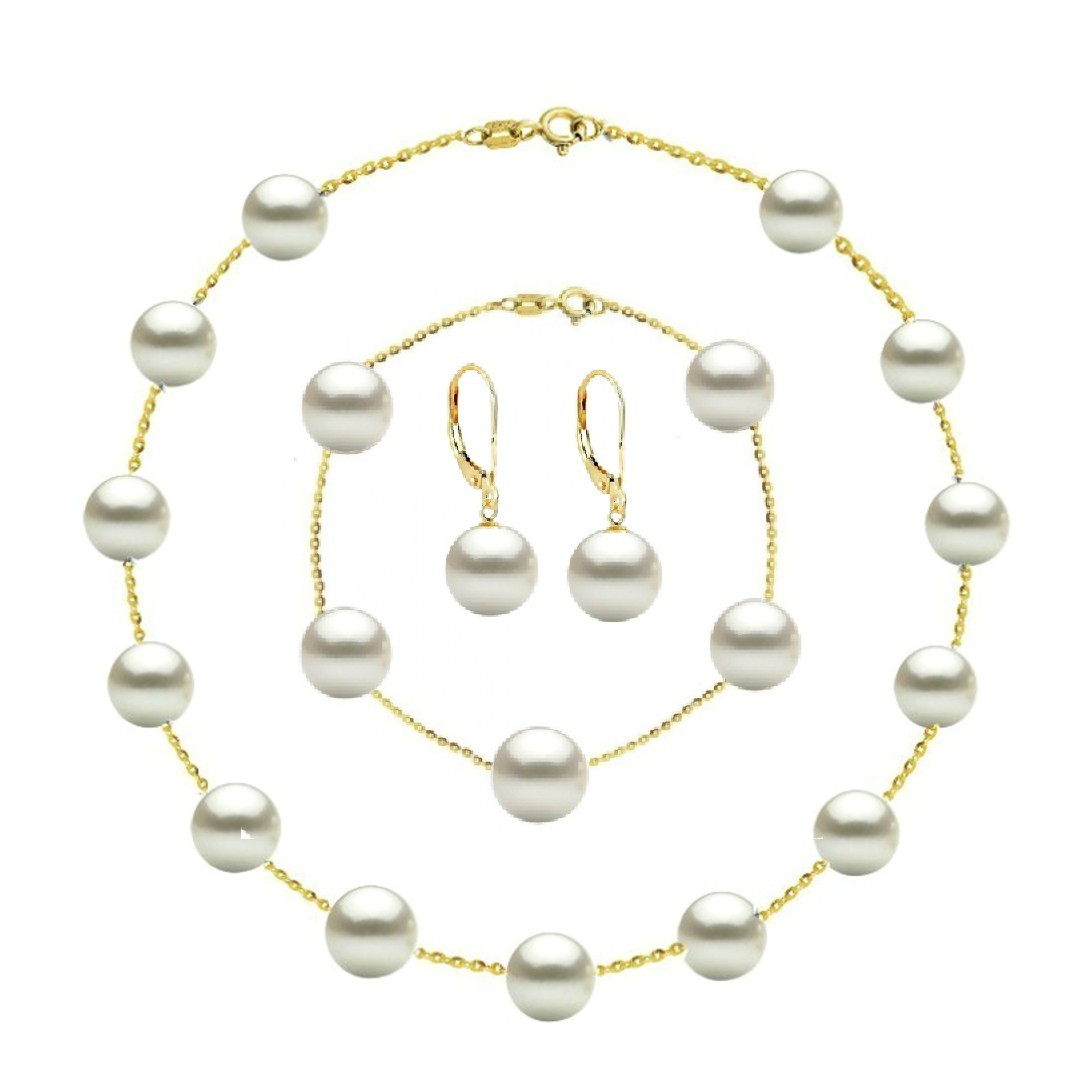 Perlele rotunde, de 7–8 mm, calitate AAA, au un luciu catifelat și o formă simetrică ce adaugă coerență fiecărei piese. Colierul are o lungime standard de 45 cm, iar brățara – 18 cm. Cerceii cu tortiță închisă din aur 14K sunt comozi, eleganți și practici în orice context.