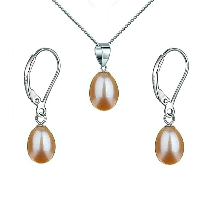 KASKADDA® Set Perle Crem Lacrimă – Colier cu Pandantiv și Cercei, Argint 925, Perle Naturale 5/8 mm | KASKADDA®