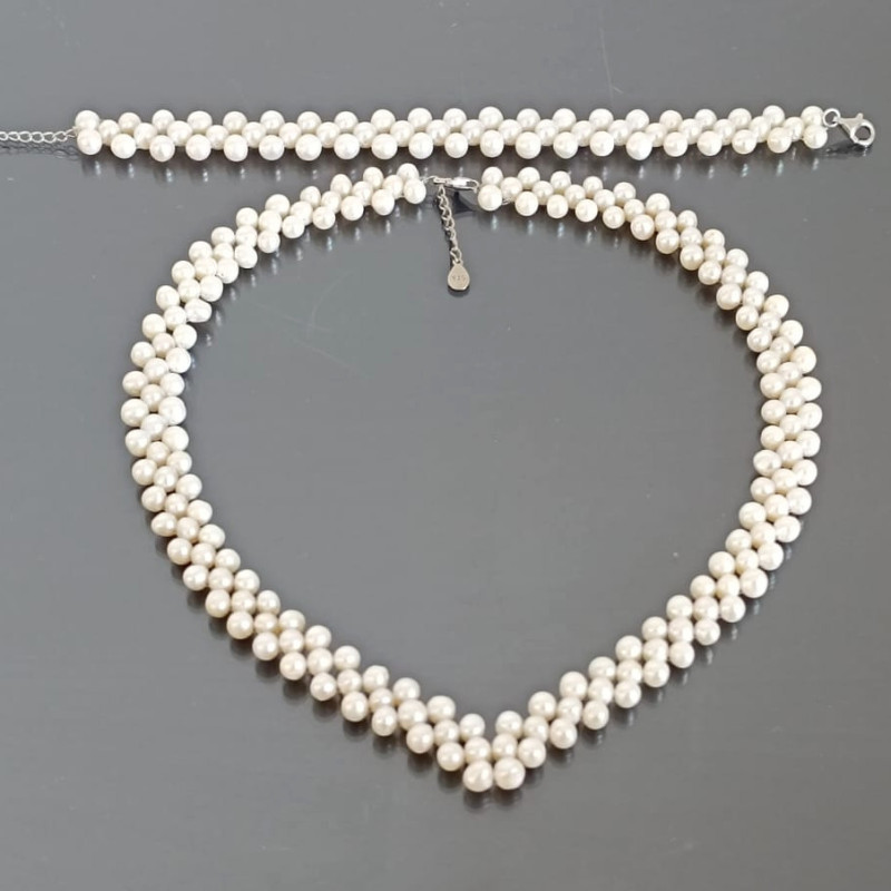 Set Perle Delicate Beauty– Colier și Brățară cu Perle Naturale Albe 5–6 mm, Închizători Argint 925 – KASKADDA®